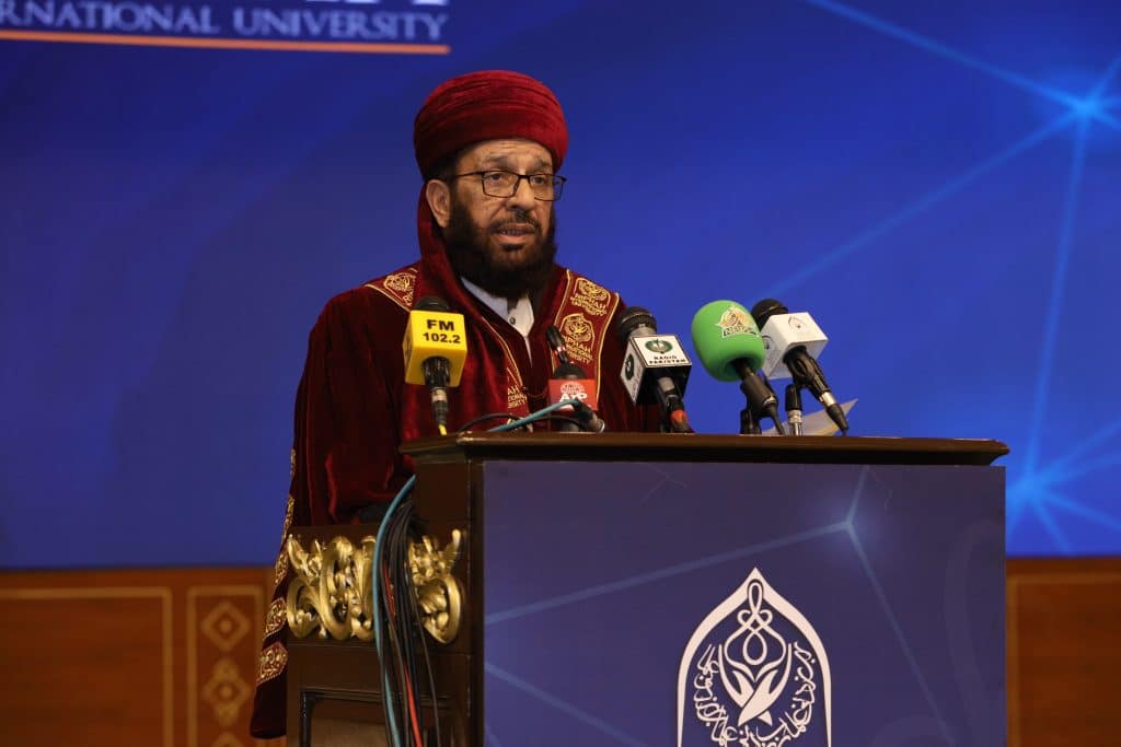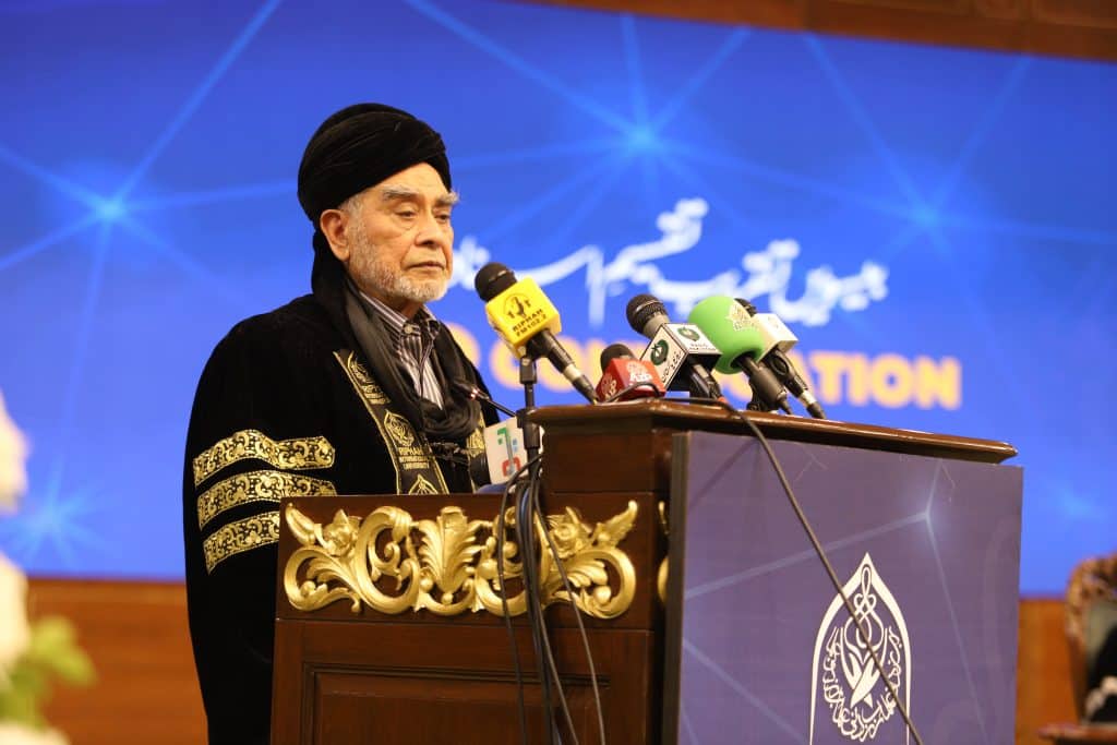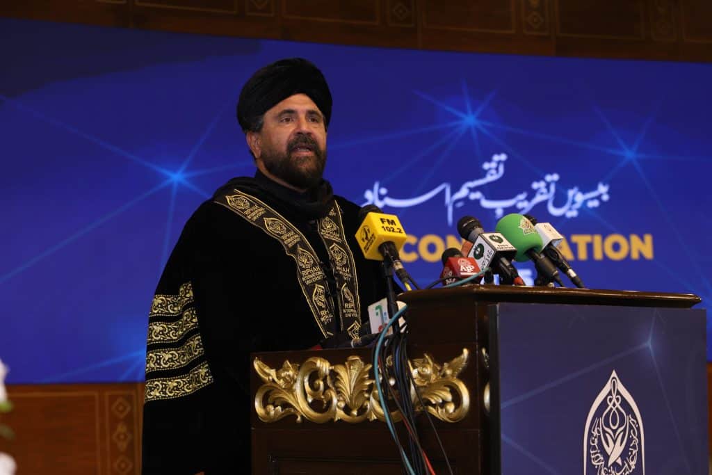 Federal Minister for Religious Affairs and Interfaith Harmony, Sardar Muhammad Yousaf, attended as the chief guest, joining Chancellor Hassan Muhammad Khan, Vice Chancellor Prof. Dr. Anis Ahmad, faculty members, graduates, and parents.