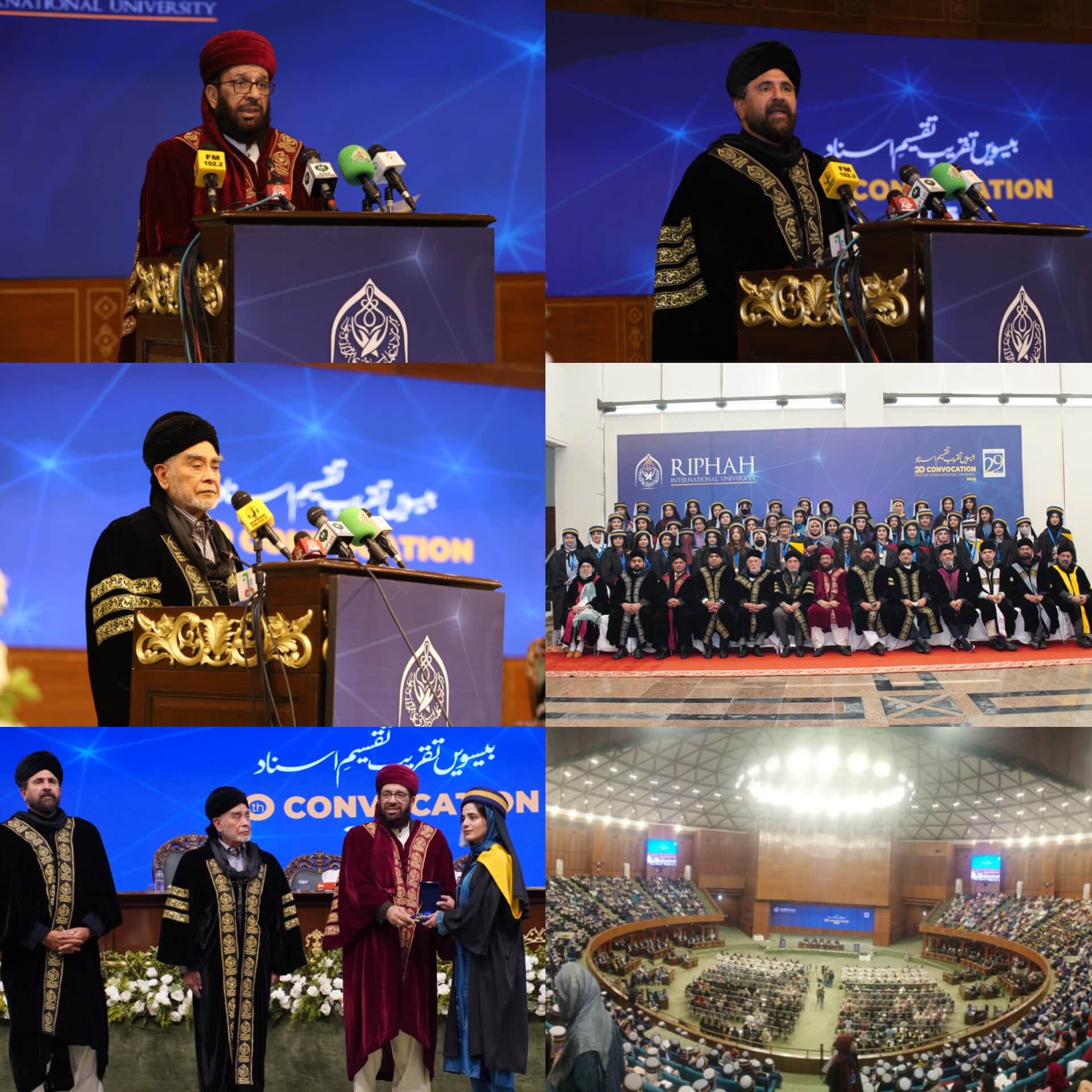 Riphah International University held the opening of its 20th Convocation at the Islamabad Convention Centre with grandeur and enthusiasm. The two-day convocation, beginning today, will see a total of 2,860 students receiving their degrees celebrating their hard work, dedication, and academic achievements. Newly enrolled Palestinian students also attended
