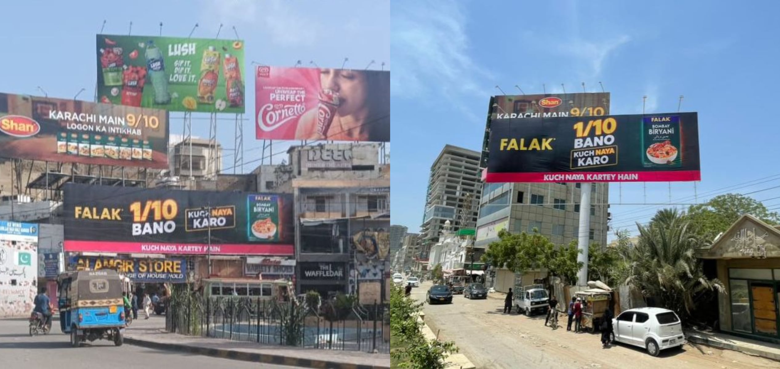A recent outdoor advertising move by Falak has caught public attention for its clever strategy. The company placed its billboard right next to a well-known competitor, Shan Masala, creating a direct visual comparison that people found hard to ignore.