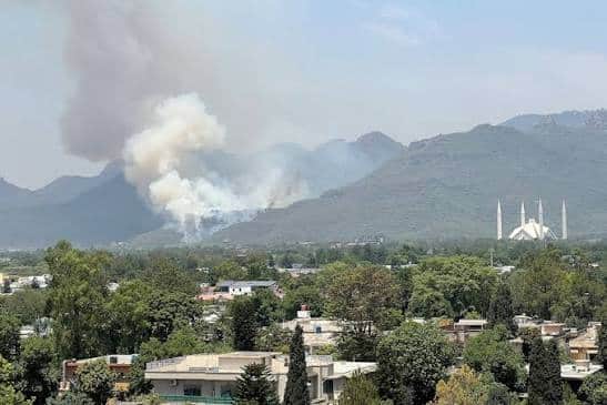 Firefighters climbed up on foot to a hilltop to put out a fire that started in the Margalla Avenue range, according to the district administration. The fire broke out late at night and quickly spread across the dry area, creating concern for nearby surroundings.