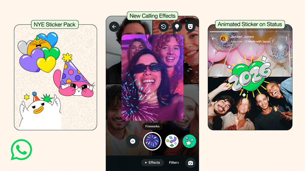 • Status updates: for the first time, WhatsApp is bringing animated stickers to Status! Use a special 2026 layout with an animated sticker to help ring in the New Year.