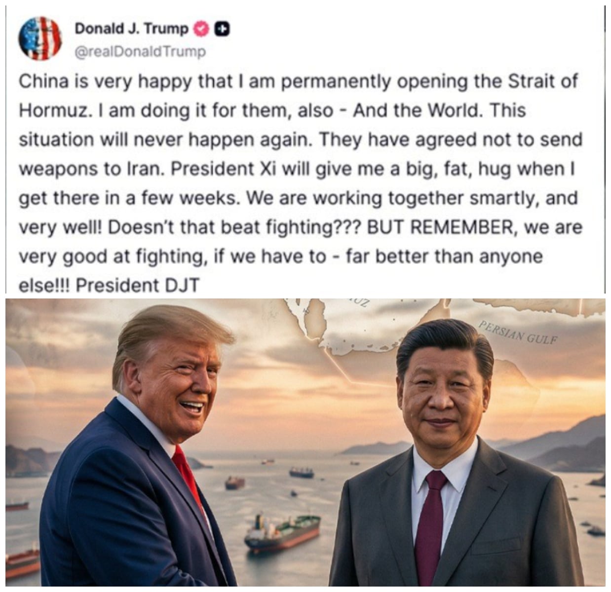 “I am Opening Strait of Hormuz for China, Then Chinese President will Give me Fat Hug” Donald Trump
