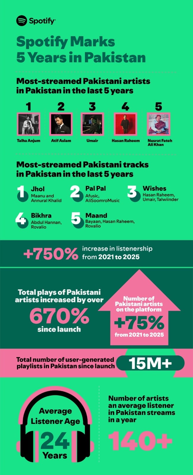 Karachi, April 16, 2026 — In Pakistan, listeners are exploring more music than ever before—moving across genres, generations, and languages in ways that are reshaping how music is discovered and experienced. Five years since its launch in the country, Spotify is marking a milestone defined not just by growth, but by a shift in how deeply audiences are engaging with music.
