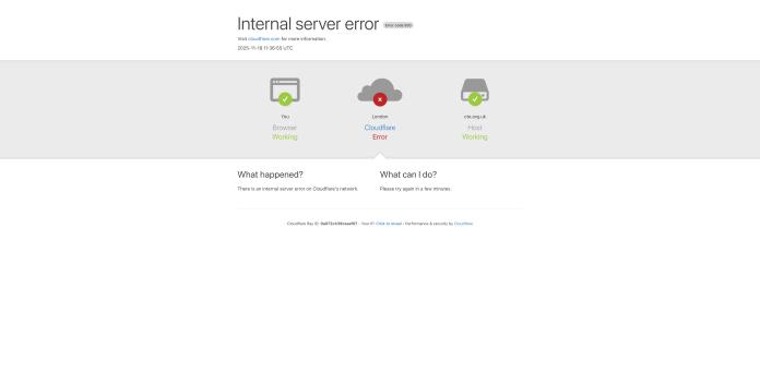 According to Cloudflare’s official status page, the outage was triggered by an internal server error, causing websites relying on the company’s content delivery and security network to display “500 errors” or fail to connect entirely. The issue quickly spread across regions, impacting everything from social media platforms to business tools and news sites.