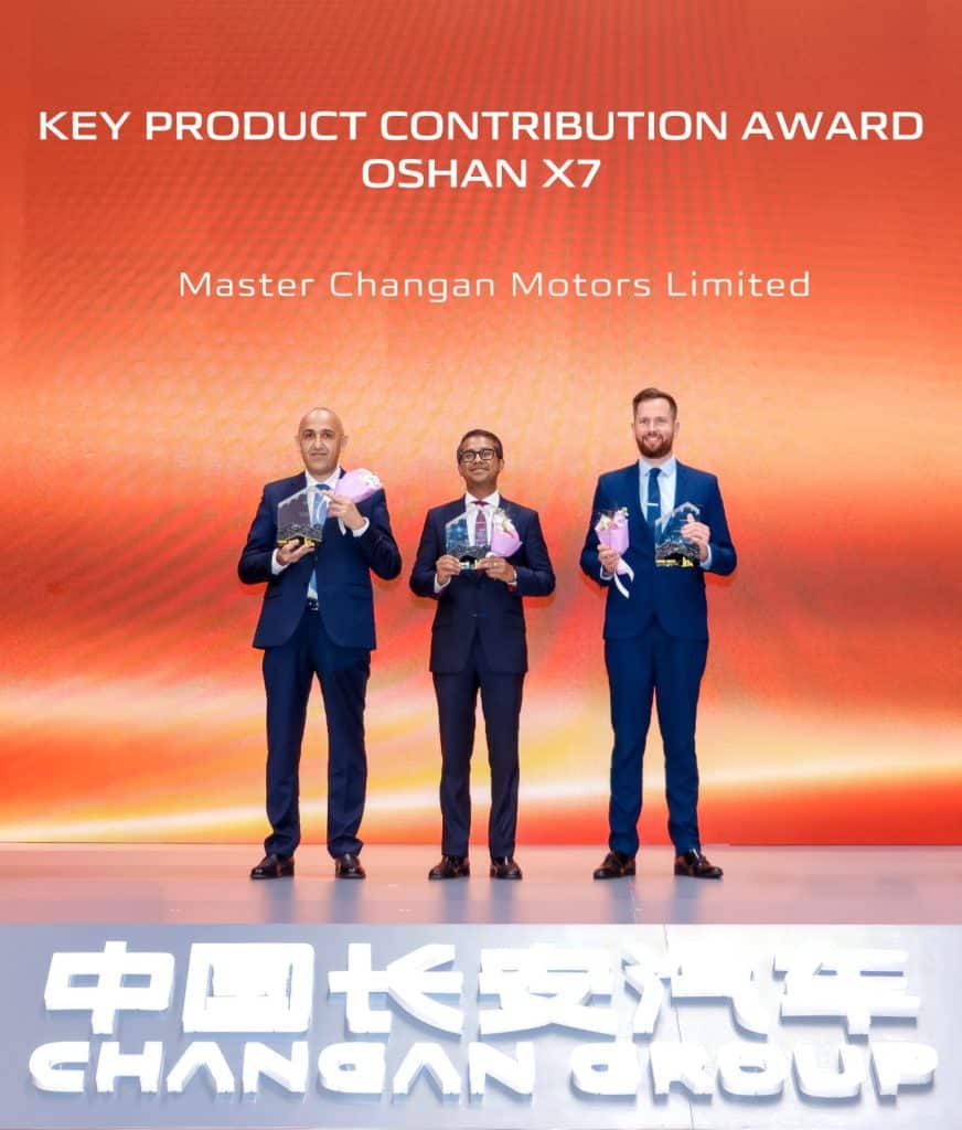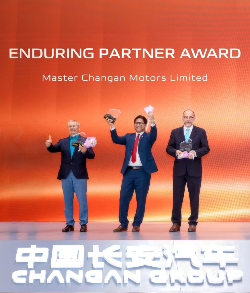• “Vast Ocean Plan” Contribution Award for extensive contribution to Changan’s global expansion strategy presented to Danial Malik, CEO Master Changan by Zhu Huarong, Chairman of Changan Automobile.