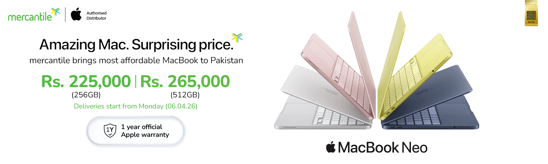 Mercantile, an Apple Authorized Distributor & Service Provider leads the launch of MacBook Neo in Pakistan, bringing not just a new device, but a shift in how users experience Apple technology locally. With a 1-year local warranty, one of the biggest barriers to purchase – after-sales reliability – is effectively addressed.