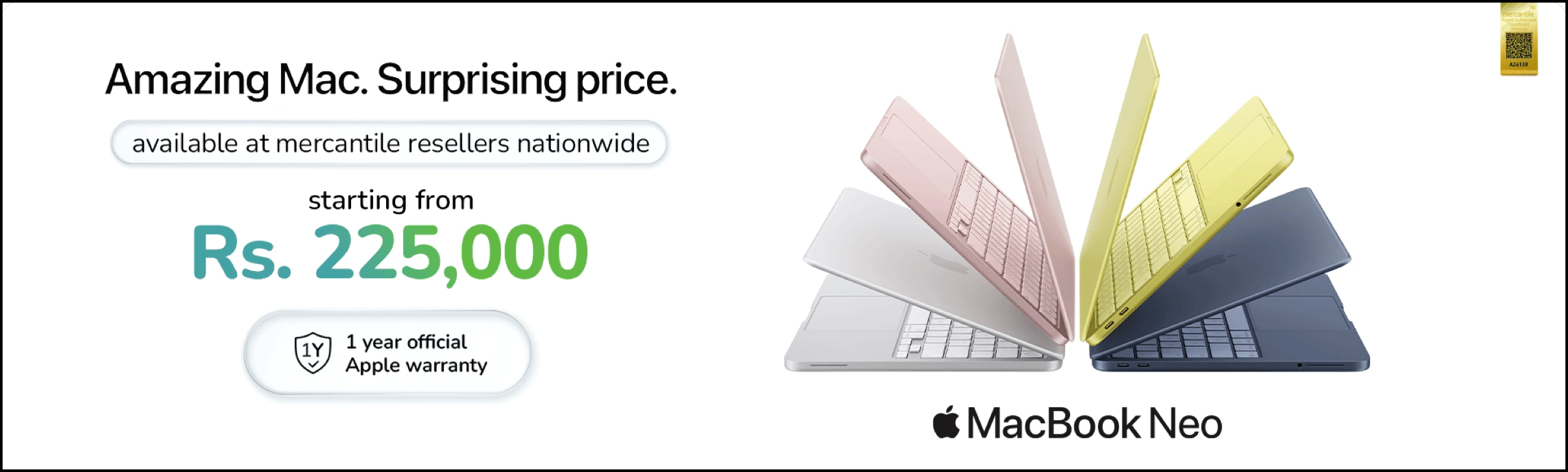 Mercantile, an Apple Authorized Distributor & Service Provider leads the launch of MacBook Neo in Pakistan, bringing not just a new device, but a shift in how users experience Apple technology locally. With a 1-year local warranty, one of the biggest barriers to purchase – after-sales reliability – is effectively addressed.