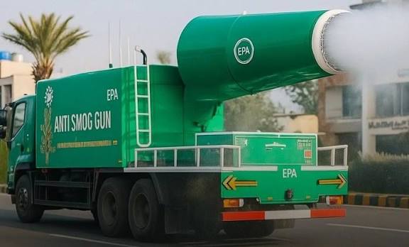 The Punjab government has introduced anti-smog cannons in Lahore to help reduce rising air pollution levels. These machines work by spraying a fine mist of water into the atmosphere, which helps trap harmful particles and dust that cause smog. By cleaning the air in this way, officials hope to improve health and visibility across the city.