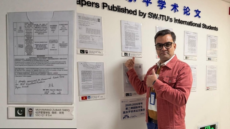PICS officials said the recognition highlights Pakistan’s rising visibility in global research networks and reflects the strengthening academic collaboration between the University of Sargodha and Chinese institutions. Tariq’s paper is currently showcased at SWJTU among high-impact publications by international scholars.