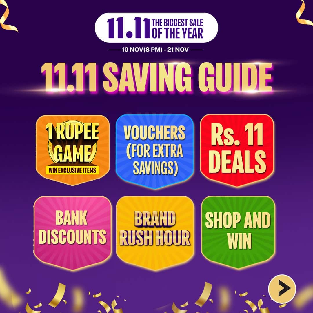 11.11 also brings special Rs. 11 deals on selected products. These offers are limited in both stock and time. Shortlist your favourite items early and add them to cart, so when the deal opens you only need to tap checkout. Keep following the campaign page for live updates so you do not miss the time window. These deals sell out very quickly, so planning and speed are essential.